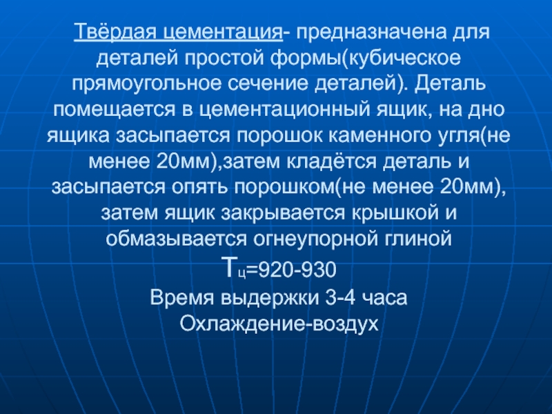 Слайд 9 Твёрдая цементация- предназначена для деталей простой формы(кубическое прямоугольное сечение деталей).