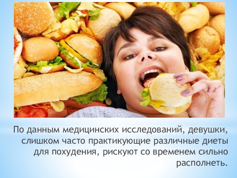 Слайд 19По данным медицинских исследований, девушки, слишком часто практикующие различные диеты для