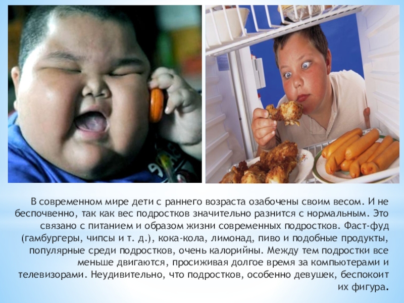 Слайд 16В современном мире дети с раннего возраста озабочены своим весом. И