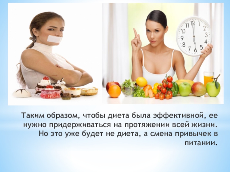 Слайд 20Таким образом, чтобы диета была эффективной, ее нужно придерживаться на протяжении
