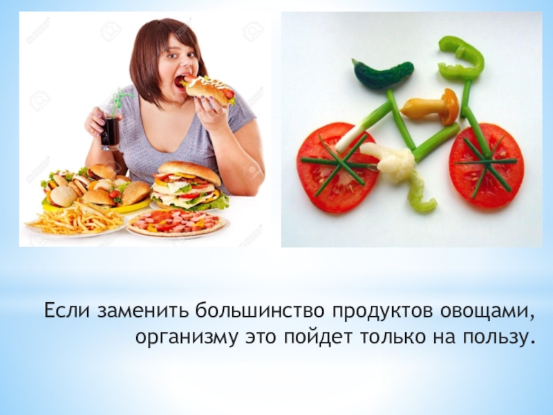 Слайд 10Если заменить большинство продуктов овощами, организму это пойдет только на пользу.