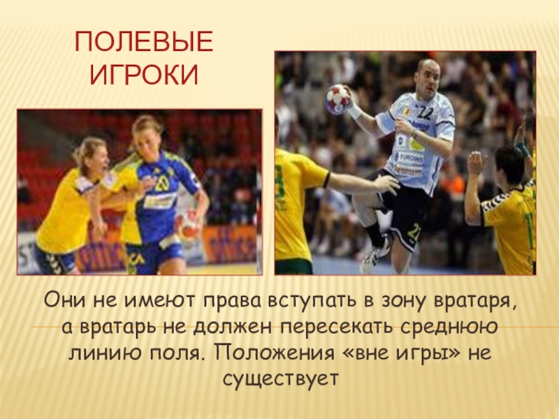не должен пересекать среднюю линию поля. Положения «вне игры» не существует
