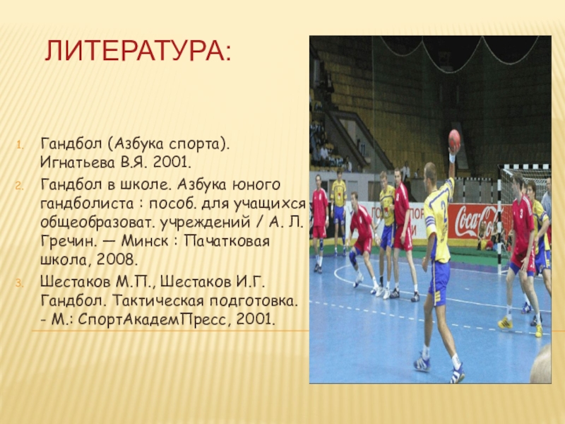 Шестаков М.П., Шестаков И.Г. Гандбол. Тактическая подготовка. - М.: СпортАкадемПресс, 2001.