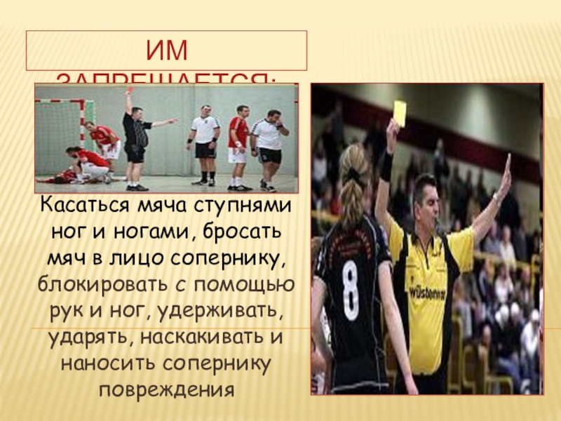 как и участие рук и кистей рук в борьбе за владение мячом, а также блокировка соперника телом.