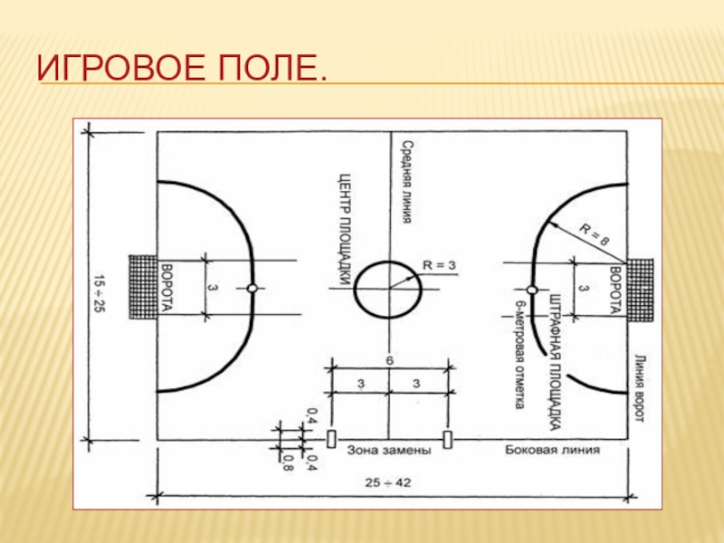 игроков. На поле в игре находятся 1 вратарь и 6 игроков. Остальные игроки - запасные,