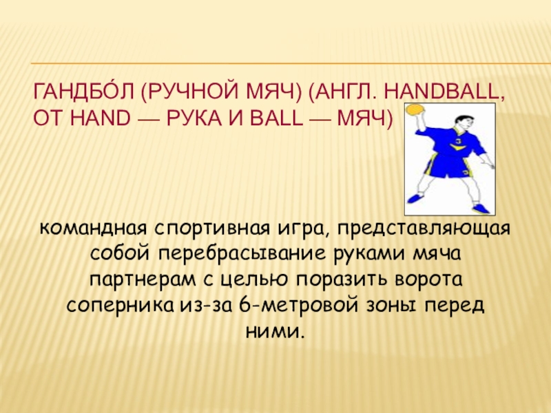 ГАНДБО́Л (ручной мяч) (англ. handball, от hand — рука и ball