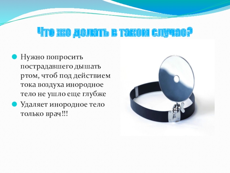Нужно попросить пострадавшего дышать ртом, чтоб