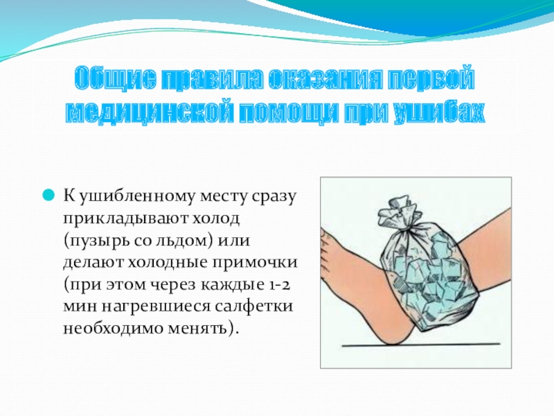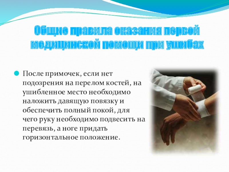Слайд 6Общие правила оказания первой медицинской помощи при ушибах