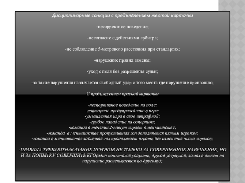 Слайд 11Дисциплинарные санкции с предъявлением желтой карточки
