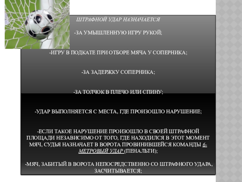 Слайд 8ШТРАФНОЙ УДАР НАЗНАЧАЕТСЯ