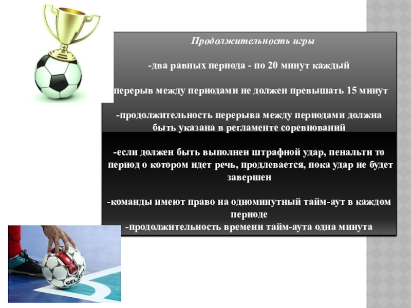 -если должен быть выполнен штрафной удар, пенальти то период о котором идет речь, продлевается, пока удар не будет завершен