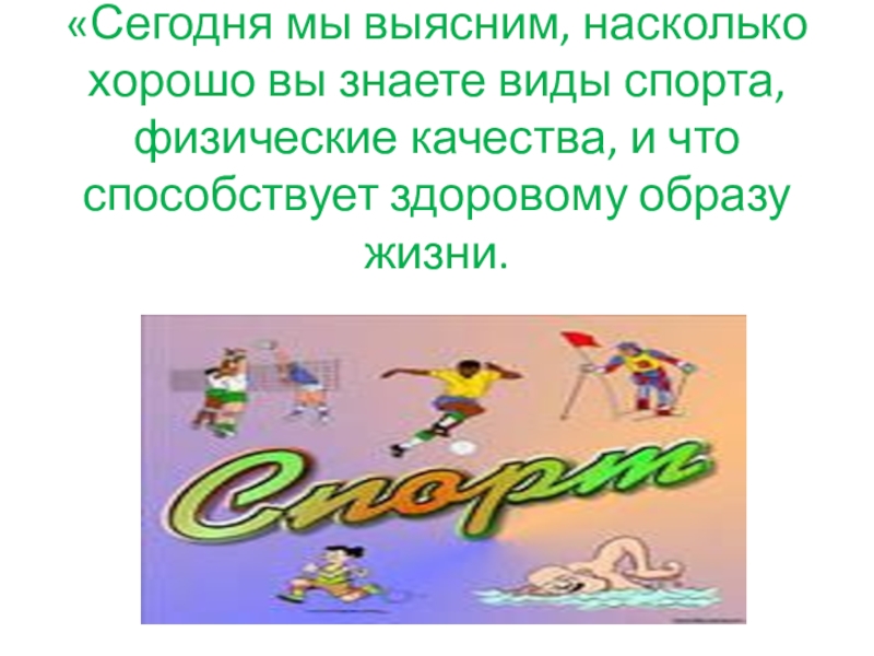 Слайд 3«Сегодня мы выясним, насколько хорошо вы знаете виды спорта, физические качества,