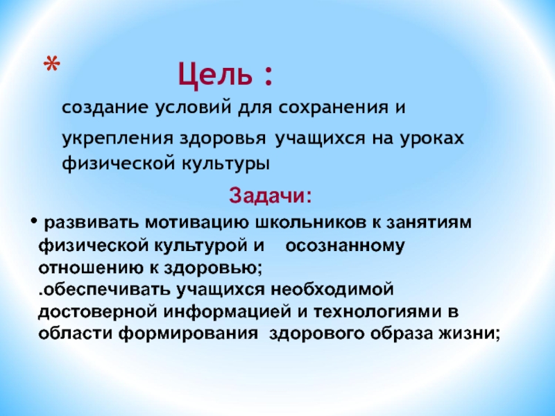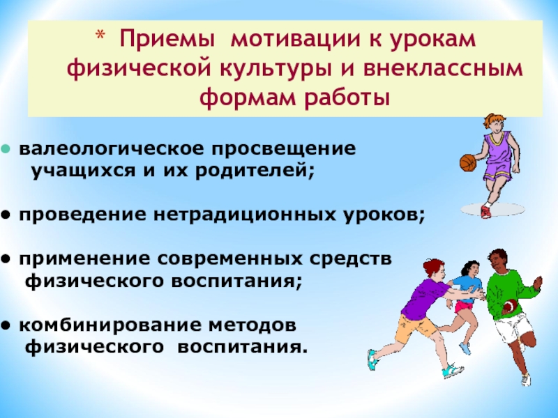 развивать мотивацию школьников к занятиям физической культурой и осознанному отношению к здоровью;