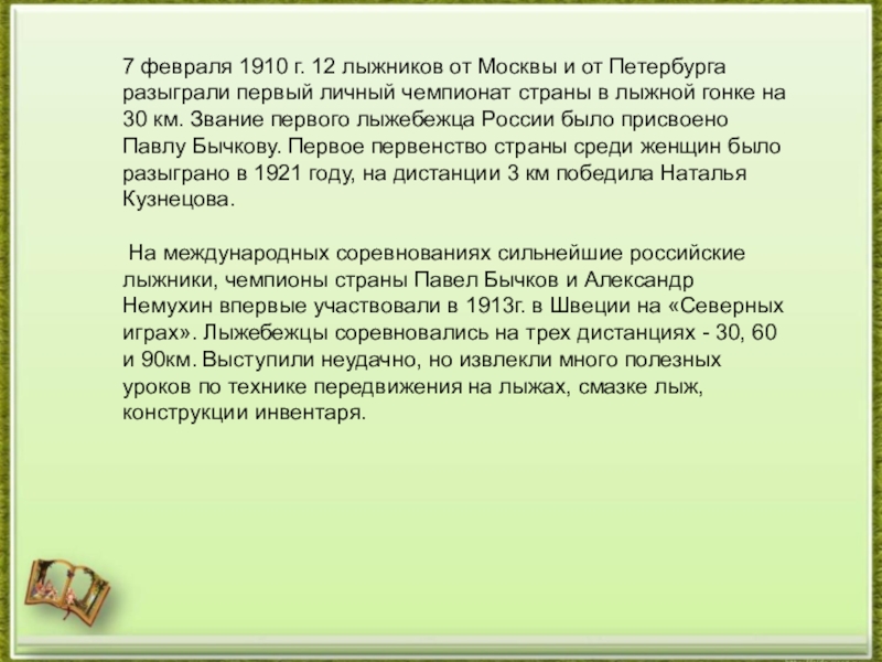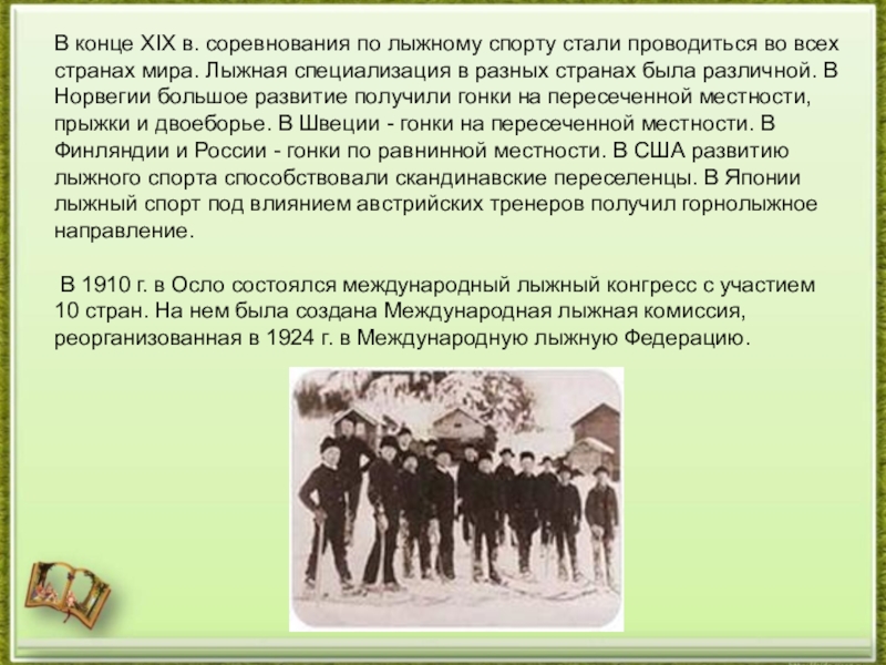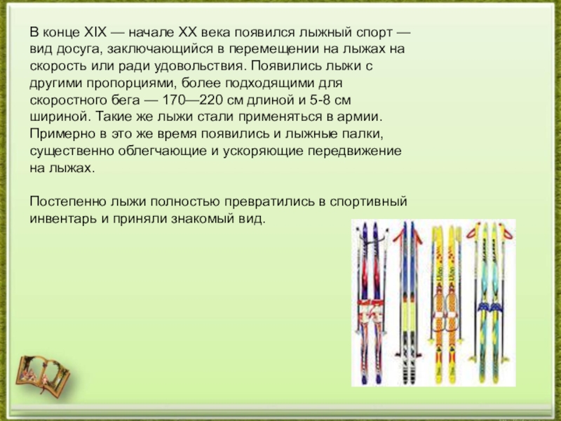 Слайд 9В конце XIX — начале XX века появился лыжный спорт —