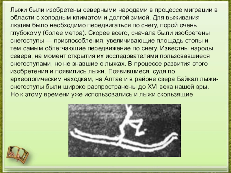 Слайд 6Лыжи были изобретены северными народами в процессе миграции в области с