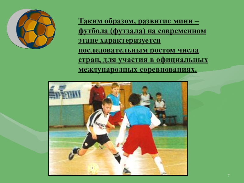 Слайд 7Таким образом, развитие мини – футбола (футзала) на современном этапе характеризуется