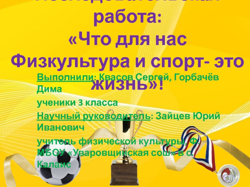учитель физической культуры, Ф. МБОУ «Уваровщинская сош» в с. Калаис
