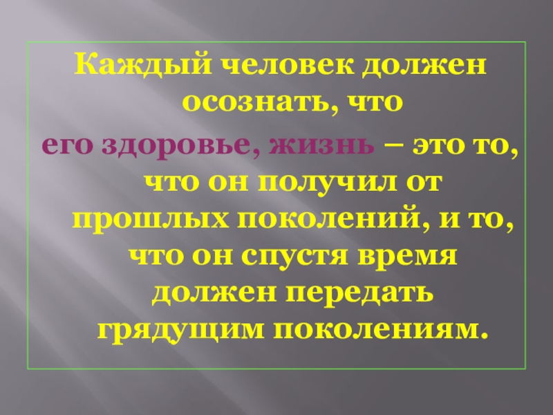 что он получил от прошлых поколений, и то, что он спустя время должен передать грядущим поколениям.