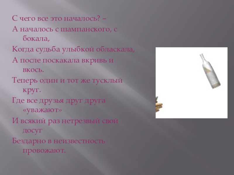 всего это примеры из жизни знаменитых певцов, киногероев и т.д. При этом они всячески пытаются доказать связь потребления наркотиков с положительными качествами героев (ловкие, смелые, красивые, богатые). Делается вывод: ничего плохого в употреблении наркотиков нет, а, начав употреблять их, можно больше походить на этих героев – кумиров молодежи.
