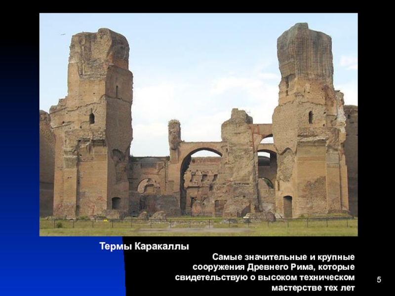 Римляне при строительстве спортсооружений придерживались принципов греков. Но в дальнейшем они стали строить спортсооружения, рассчитанные на большое количество зрителей. Гимнастионы и арены уступили место ипподромам и циркам (Большой цирк, Колизей, термы (общественные бани) и т.д.).