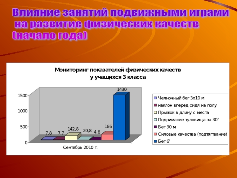 Слайд 7Влияние занятий подвижными играми на развитие физических качеств (начало года)