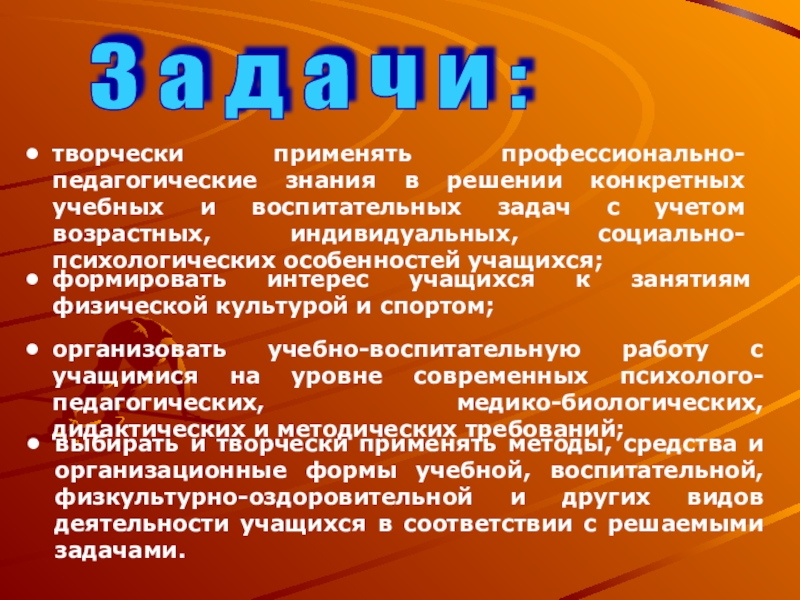 З а д а ч и :творчески применять профессионально-педагогические знания в решении конкретных учебных и воспитательных задач