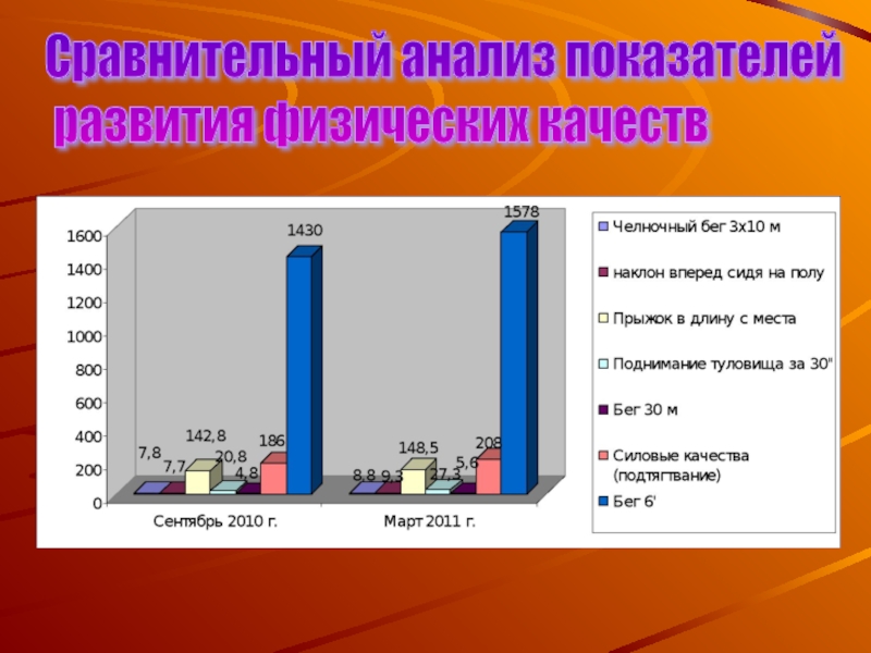 Слайд 9Сравнительный анализ показателей развития физических качеств