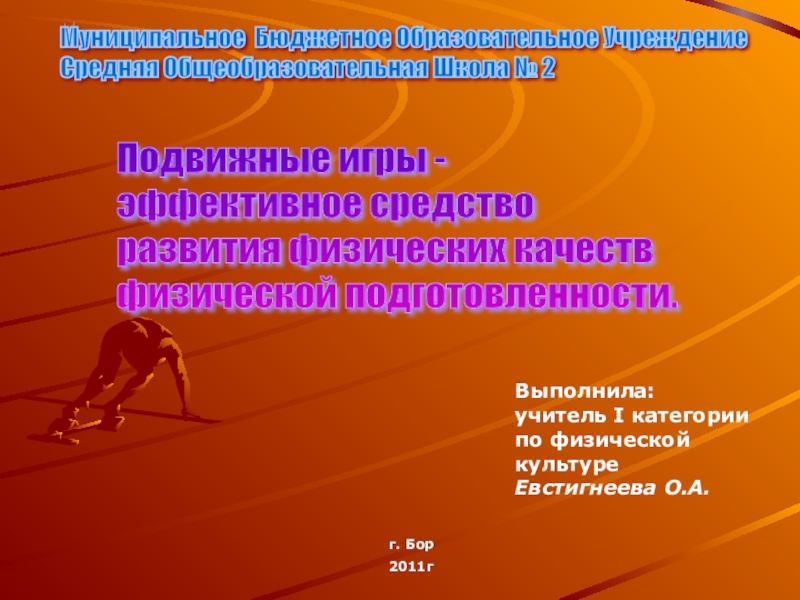 Муниципальное Бюджетное Образовательное Учреждение  Средняя Общеобразовательная Школа № 2 Подвижные игры -  эффективное средство