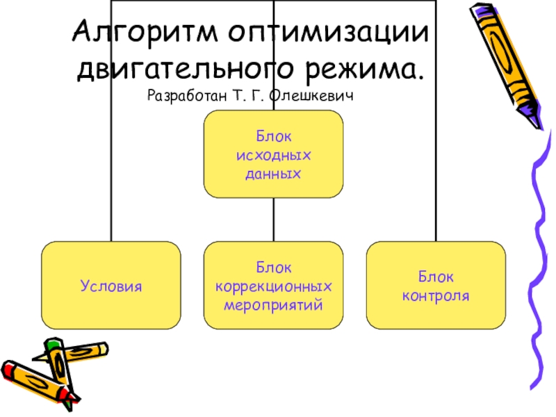 Слайд 29Алгоритм оптимизации двигательного режима.