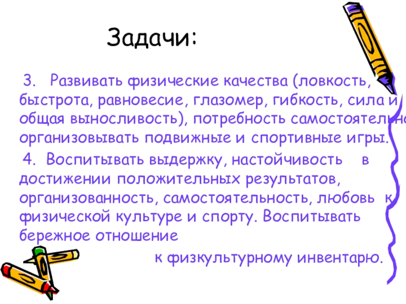 3. Развивать физические качества (ловкость, быстрота, равновесие,