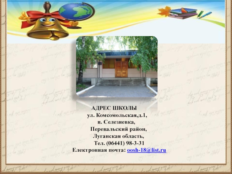 Это сайт презентаций, где можно хранить и обмениваться своими презентациями, докладами, проектами, шаблонами в формате PowerPoint с другими пользователями. Мы помогаем школьникам, студентам, учителям, преподавателям хранить и обмениваться учебными материалами.