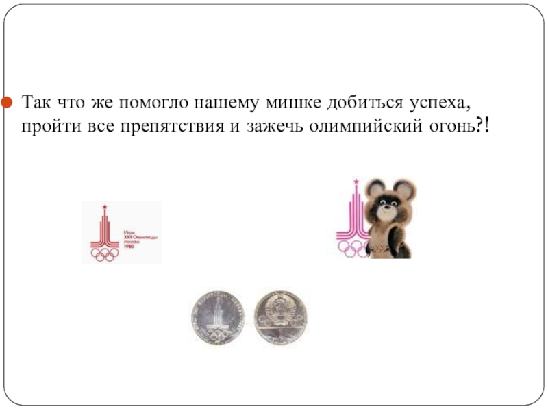 Так что же помогло нашему мишке добиться успеха, пройти все препятствия и зажечь олимпийский огонь?!