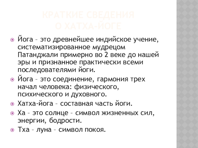 Йога – это соединение, гармония трех начал человека: физического, психического и духовного.