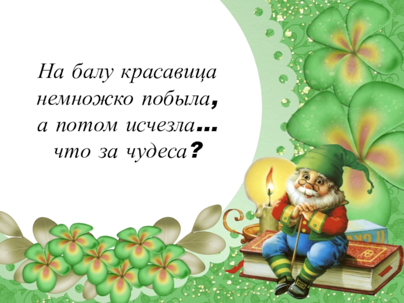 Слайд 7На балу красавица немножко побыла, а потом исчезла… что за чудеса?