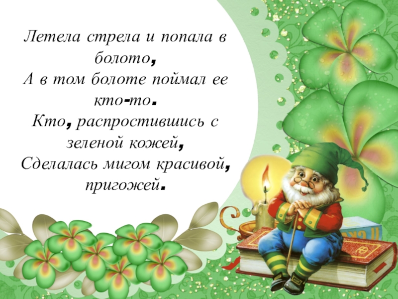 Слайд 9Летела стрела и попала в болото, А в том болоте поймал ее