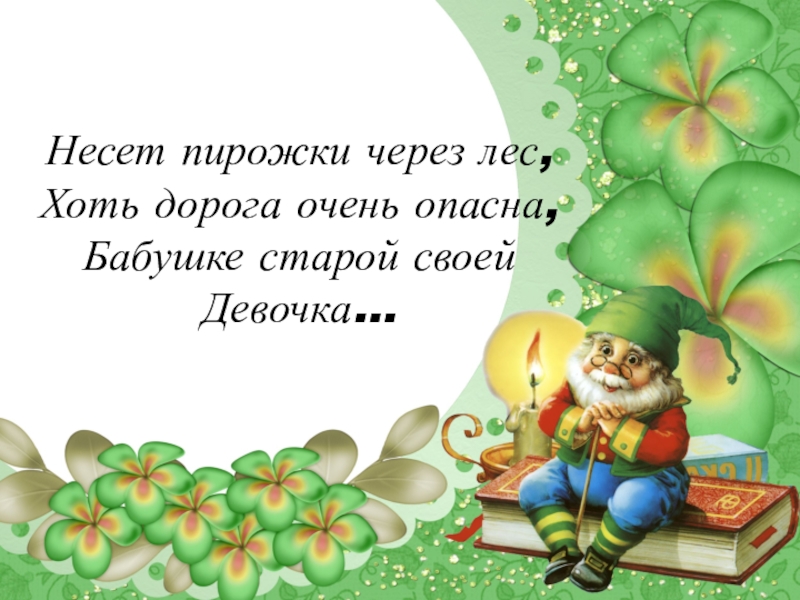 Несет пирожки через лес, Хоть дорога очень опасна, Бабушке старой своей Девочка…