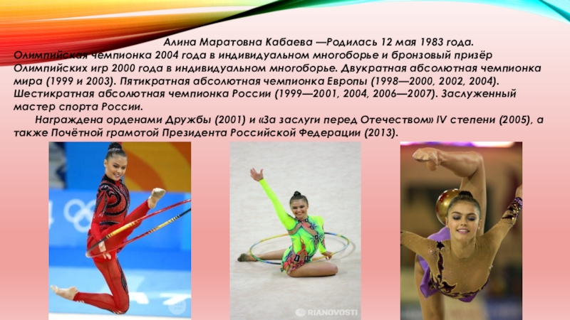 Алина Маратовна Кабаева —Родилась 12 мая 1983 года.