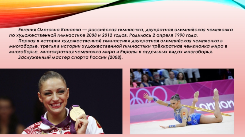 Слайд 16 Евгения Олеговна Канаева — российская гимнастка, двукратная олимпийская чемпионка по художественной