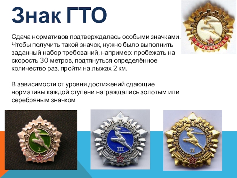 Сдача нормативов подтверждалась особыми значками. Чтобы получить такой значок, нужно
