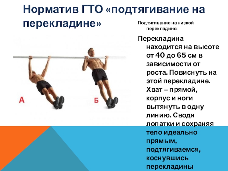 Слайд 15Норматив ГТО «подтягивание на перекладине»