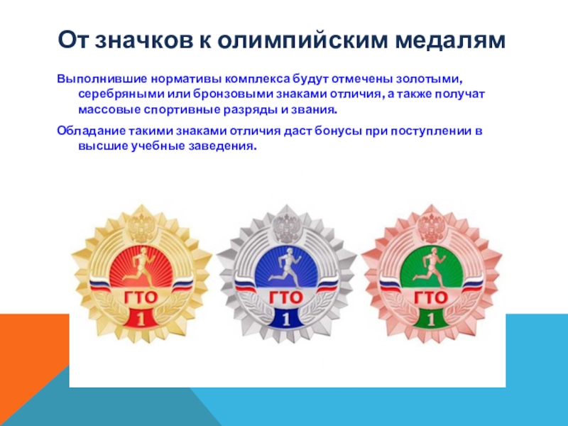 или бронзовыми знаками отличия, а также получат массовые спортивные разряды и звания.