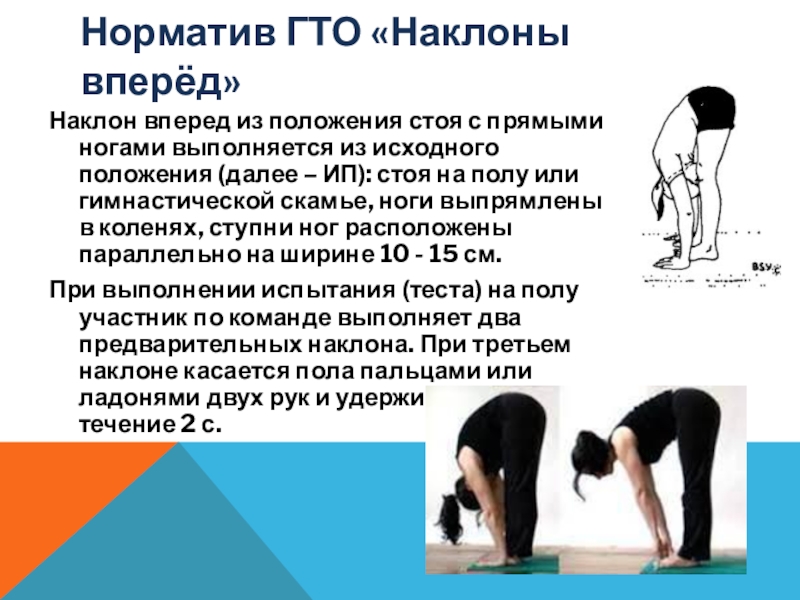 Слайд 13Норматив ГТО «Наклоны вперёд»