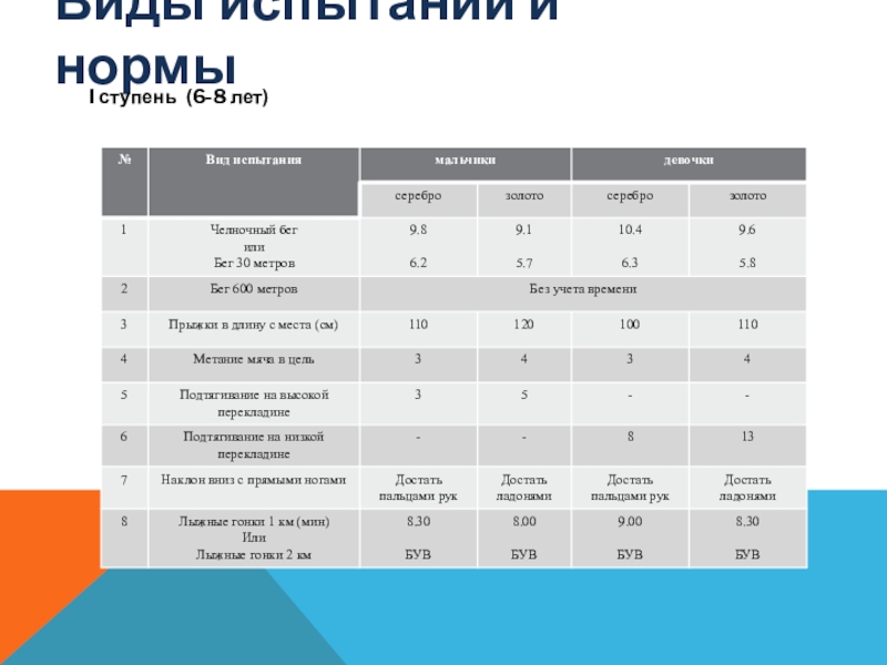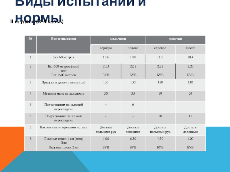 (1 классы нормы не сдают, только знакомятся с видами испытаний)