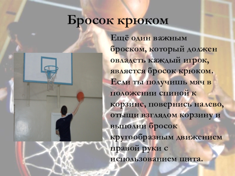 Слайд 27Ещё один важным броском, который должен овладеть каждый игрок, является бросок