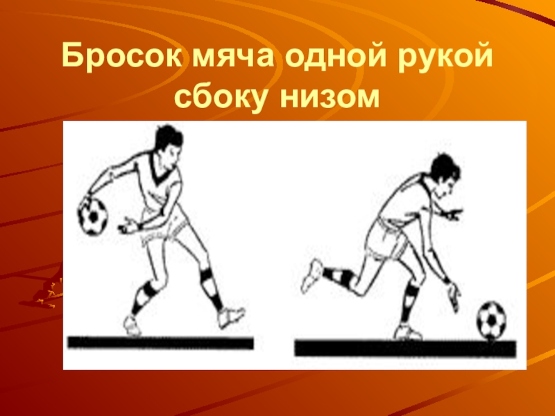 Слайд 23Бросок мяча одной рукой сбоку низом