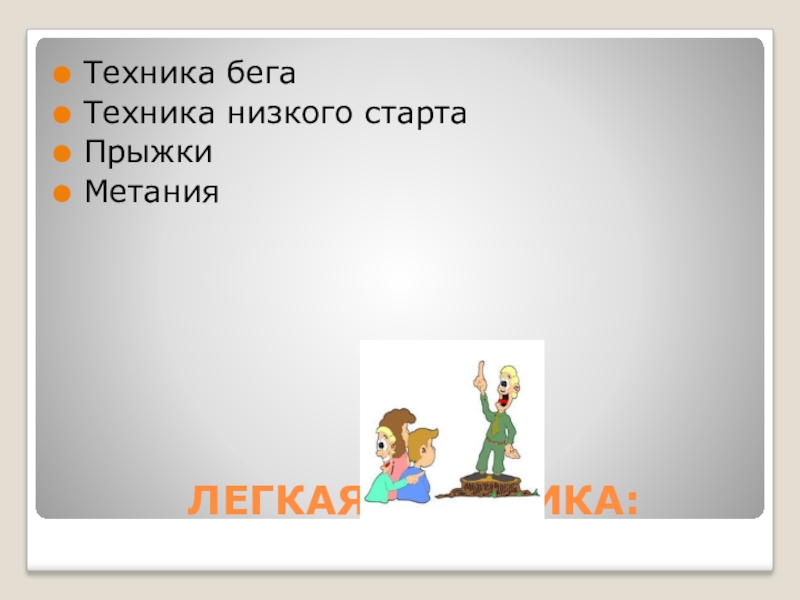 ЛЕГКАЯ АТЛЕТИКА:Техника бегаТехника низкого стартаПрыжкиМетания