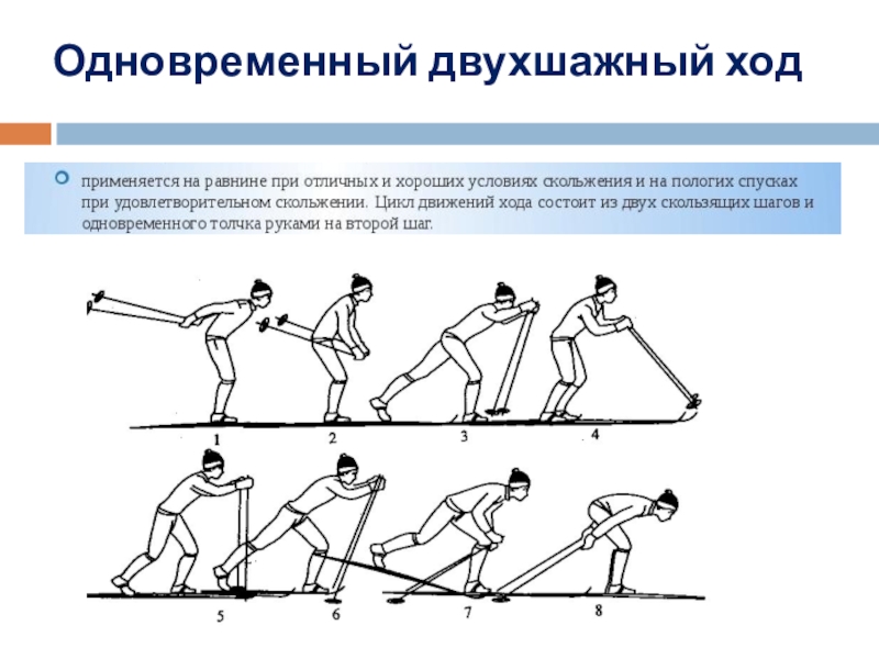 условий движения - скорости скольжения, крутизны и рельефа склона, состояния снега, инвентаря и дуги поворота;