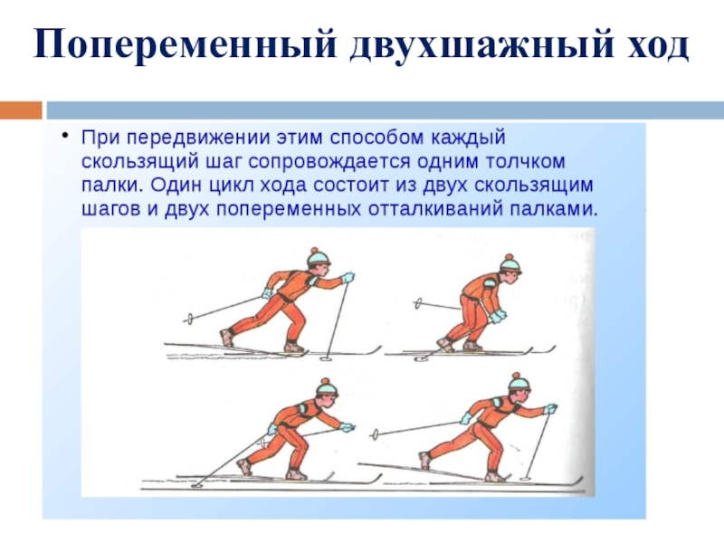 Следуя по лыжне за товарищем, сохраняйте интервал в 3—4 м. Если догнал товарища, не наступай ему на лыжи. Надо либо попросить его освободить лыжню, либо обогнать его.