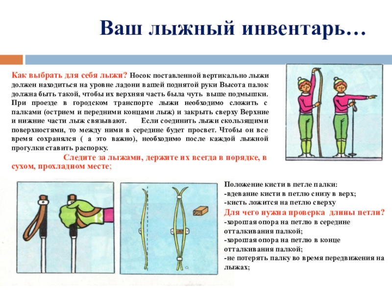 Следите за лыжами, держите их всегда в порядке, в сухом, прохладном месте;