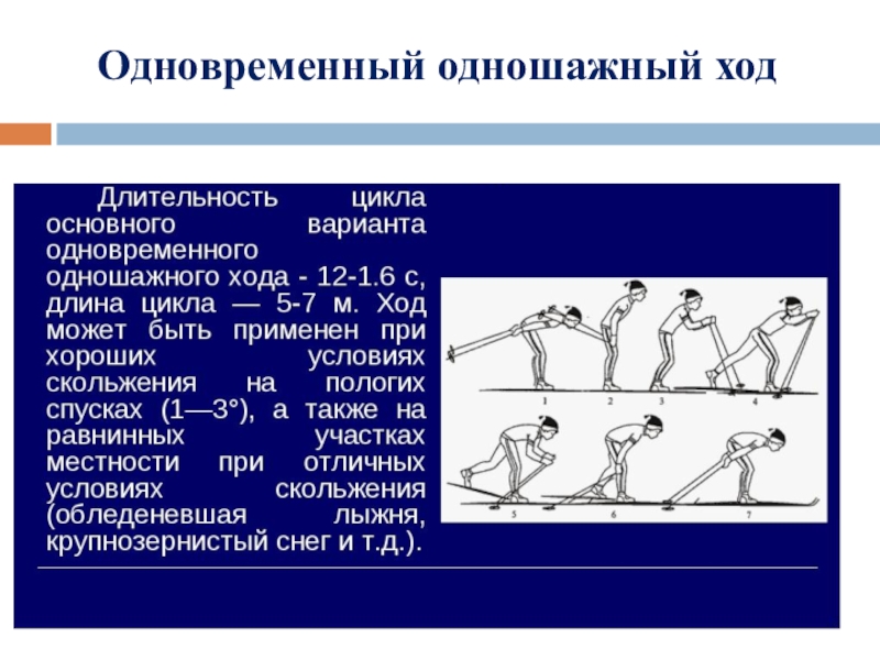 достаточно высокой скорости, когда поворот переступанием уже неприменим. Для выполнения поворота необходимо предварительно перенести массу тела на одну из лыж (внутреннюю по отношению к повороту); другую свободную от массы тела, ставят в положение упора: пятка лыжи отведена в сторону, носок выводится чуть вперёд и лыжа кантуется на внутреннее ребро. Для выполнения поворота массу тела необходимо перенести на лыжу находящуюся в упоре. Крутизна поворота зависит от угла отведения пятки лыжи, угла кантования лыжи, состояния снежного покрова и величины переноса массы тела..